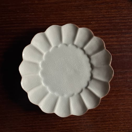 九谷焼窯元・宮吉製陶の「衾雪(ふすまゆき)」シリーズより。型打菊皿です。
