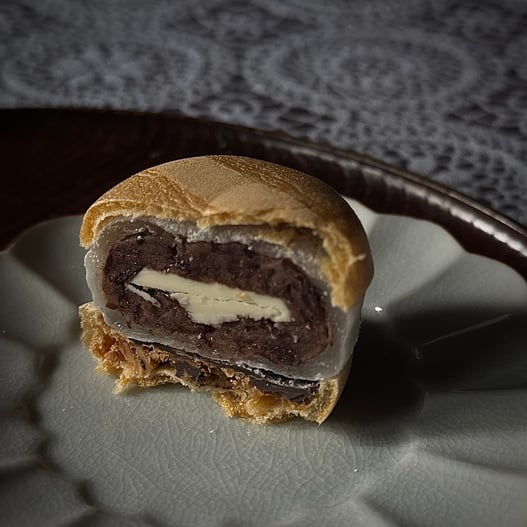 もなか、羽二重餅、粒あん、バター、チョコレート、キャラメリゼされたアーモンド。一つひとつがそのまま成立する美味しさなのに、贅沢にもそれを一口でいただくという罪なお味。